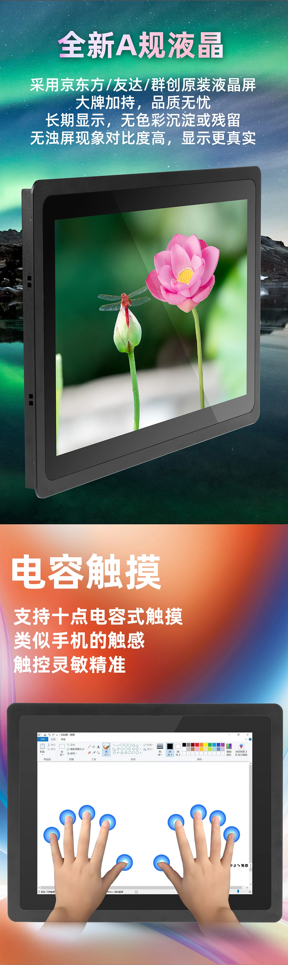 | 安装方式 | 嵌入式、桌面式、壁挂式、悬臂式 | ||||
